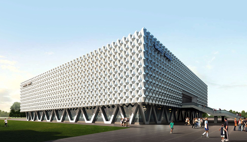 我國冬奧會冰球運動的舉辦場館——北京順義城南體育館,由北京艾爾豪斯膜式技術(shù)有限公司設(shè)計建造,其占地總面積約達9萬平方米,由綜合體育館、體育場和室外運動場地組成,用地合理緊湊,造型方正,體育館立面采用棒槌型六面體基本元素,按順序排列,形成立面獨特風(fēng)格,現(xiàn)已基本完工投入使用。